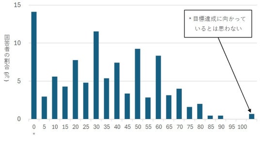 ・回答者の14.1%が感覚的な達成度0%と回答し、感覚的達成度の平均は33.7%であった。(図8)