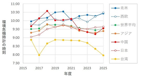 図2 世界の各地域の環境危機時計の時刻