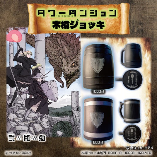 株式会社愛鷹製作所・工房名称:URAKITA工房(本社:東京都世田谷区、代表取締役:上石大介)は、月刊少年シリウス連載中『タワーダンジョン』(講談社刊・著者:弐瓶勉)作中に登場する、【盾】【剣】【キャラクター】の彫刻を施した特製『タワーダンジョン』木樽ジョッキを、直販サイト「URAKITA工房」にて2025年2月10日(月)12時より新発売します。