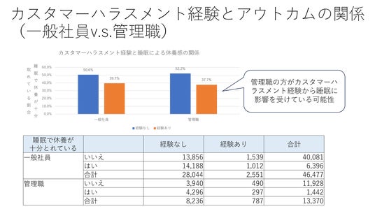 この結果は、管理職において、カスタマーハラスメントの影響がストレスからの回復過程にまで及んでいる可能性を示唆しています。