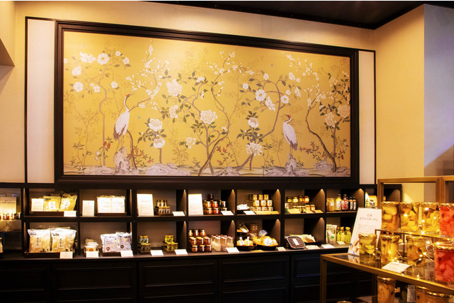 昨年リニューアルしたショップは「蓼科 親湯温泉」の館内にある売店。創業100周年に向けた「100周年カウントダウンプロジェクト」の一貫として、売店を大改装し、商品陳列のスペシャリスト中村真紀子氏監修の下、見やすさ・使いやすさに考慮しつつ、シノワズリの壁紙とアンティーク風の棚を使用することで、ラウンジや客室のデザインにもマッチしたショップに生まれ変わりました。商品に関しても、健康長寿県であることから、1.地域還元につながる信州の「健康長寿」食品と2.「親湯ライフスタイル」のご提案の2つをコンセプトに品揃えを行い、どこにでも売っているような商品を売るのではなく、その地域の特色が伝わり、顧客の購買行動が地域への還元につながるもの、そしてここでしか購入できないもの、旅の思い出に残るものを多く取り揃えております。
