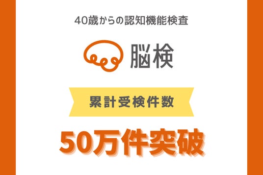 検査はオンライン上で、IDとパスワードでログインして受検するものと、薬局薬店の店頭に設置されたり、企業のイベントなどで販促ツールとして使われたりする「脳年齢測定器」があり、この度、この2つの「脳検」の受検件数が50万件を突破いたしました。
