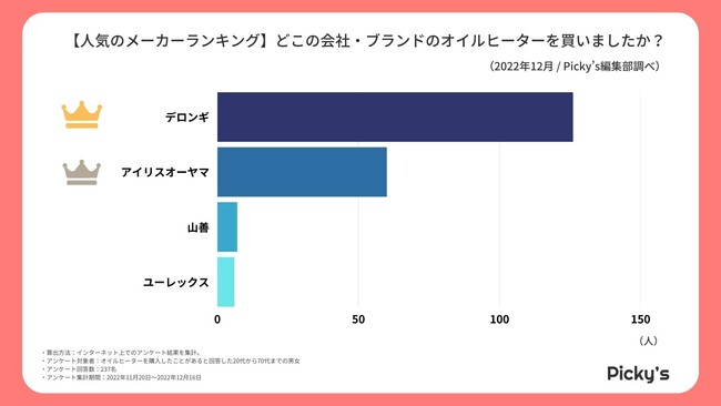 このたびPicky’s(https://rentry.jp/note/)では、オイルヒーターを買う際に意識していることや人気のメーカー・ブランドなどをインターネット上でアンケート調査を行い、ランキングを作成いたしましたので発表いたします。