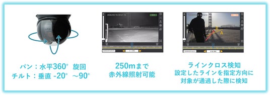 ・パン(水平360°旋回)、チルト(垂直 -20°~90°)に対応