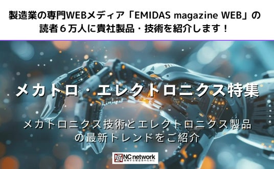 第二回となる【メカトロ・エレクトロニクス特集】は7月中旬から製造業向け情報メディア「EMIDAS magazine WEB」で公開し、エントリー企業の技術・製品情報を広く発信すると共に、新たな顧客開拓の機会を創出します。