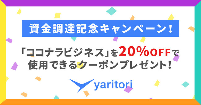 「yaritori」を新規でご導入いただいた方を対象に「ココナラビジネス」で使える20%OFF(最大1万円まで)のクーポンをプレゼントします。