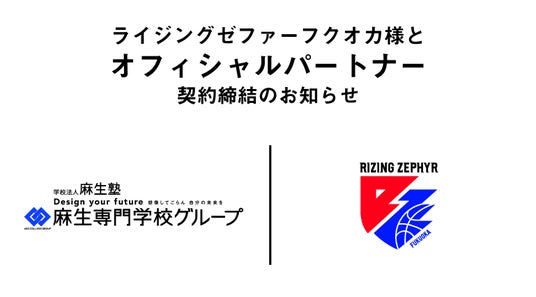 麻生専門学校グループは、社会貢献活動、地方創生の一環として、福岡県を拠点とするプロバスケットボールチーム「ライジングゼファーフクオカ」と今シーズンも引き続き「オフィシャルパートナー」契約を結びました。福岡県を拠点に活動するライジングゼファーフクオカの応援を通じ、地域社会との絆を深めながら、地域の豊かな発展に寄与して参ります。