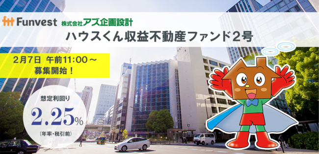 「未来をわかちあう投資」を提供する「Funvest(ファンベスト)」(以下、Funvest)は、「ハウスくん収益不動産ファンド2号」(以下、本ファンド)の募集を2/7より開始しますので、お知らせいたします。