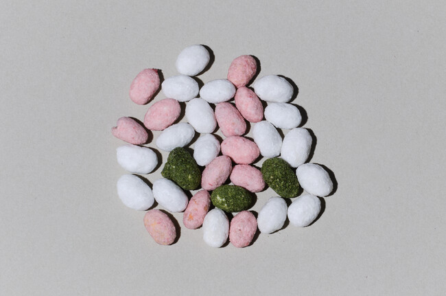 創業寛文三年、富山の麦芽水飴の老舗「島川あめ店」が手がける豆菓子。昔ながらの製法で作った手作りの水飴の優しい甘さと、富山産の大ぶりで味の濃い大豆がマッチします。青のり・いちごみるく・砂糖の3種は彩りも豊かで見た目にも楽しい一品。