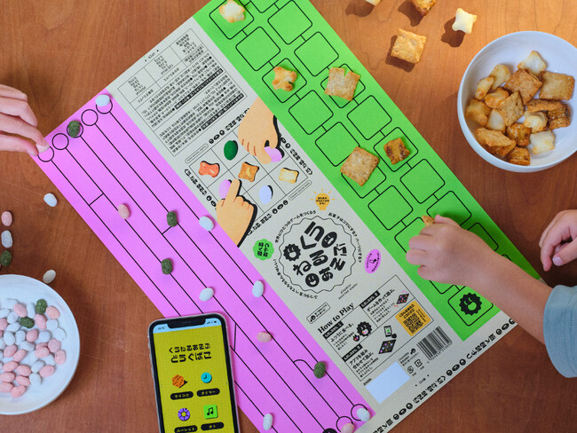 「くうねるあそぶ」は、お菓子・ゲームシート・アプリがセットになったプロダクト。