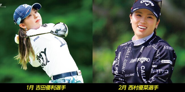 2023年の掲載選手は、吉田優利、西村優菜、笹生優花、高橋彩華、渋野日向子、小祝さくら、堀琴音、安田祐香、原英莉花、稲見萌寧、西郷真央、山下美夢有。今が旬のトッププロ選手ばかりです。