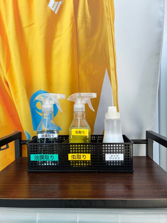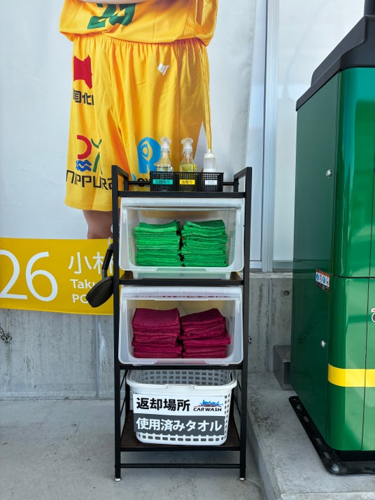 拭き上げスペースには選手幕があり、推し選手の前でピカピカになった愛車と記念撮影をお楽しみいただけます。