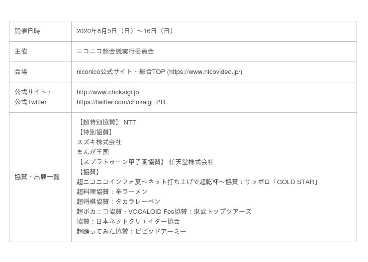 「ニコニコネット超会議2020夏 Supported by NTT」開催概要