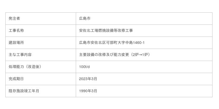 JFEエンジニアリング株式会社(社長:大下元、本社:東京都千代田区)は廃棄物処理プラントの基幹改良工事を今年度2件受注いたしました。環境管理センター(神奈川県大和市)および安佐北工場(広島県広島市)における基幹改良工事で、受注金額は2件合計で約85億円となります。