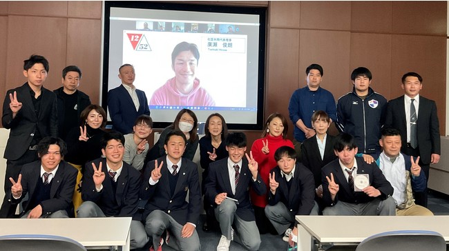 今回は、同校ラグビー部員への『青春の宝』映像のお披露目となる上映会を実施しました。上映会当日には廣瀬俊朗がサプライズゲストとしてオンライン登場。選手たちに激励のメッセージを送りました。