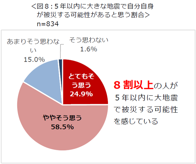 ■8割以上の人が5年以内に大きな地震で被災する可能性があると思うと回答。