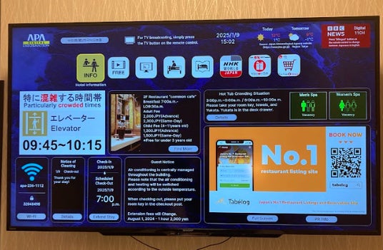 朝日放送グループの株式会社ABCフロンティア(本社:東京都港区 代表取締役社長:井口毅)と、ホテル向けIoTソリューションを提供するブリッジ・モーション・トゥモロー株式会社(本社:東京都品川区 代表取締役社長:島本茂弘)が共同運営するホテル内客室テレビCM「おもチャンネル」において、株式会社カカクコム(本社:東京都渋谷区、代表取締役社長:村上敦浩)様が展開するインバウンド向け「Tabelog」のCMを配信しました。