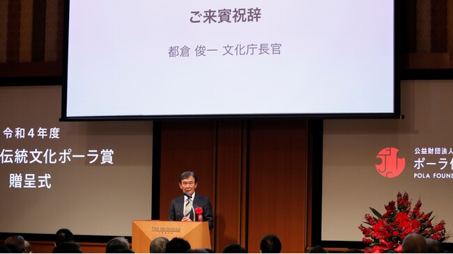公益財団法人 ポーラ伝統文化振興財団 (理事長 小西尚子)は、2022年度 第42回伝統文化ポーラ賞贈呈式を、令和4年12月13日(火)ザペニンシュラ東京にて執り行いました。式には各賞の受賞者の他、都倉俊一文化庁長官も出席。会場では、日本の伝統文化を守り、支える伝承者たちの日々の活動について惜しみない拍手が送られました。
