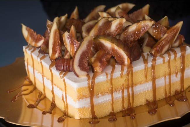 「イチジクのショートケーキ」は、甘さ控えめのショートケーキに、フレッシュなイチジクをのせ、トロリとしたキャラメルソースを垂らした一品。ふわりとしたスポンジとイチジクの食感が絶秒です。