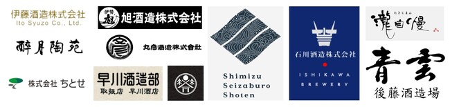 ・石川酒造、丸彦酒造、清水清三郎商店、河武醸造、後藤酒造場、ちとせ、瀧自慢酒造、早川酒造部、醉月陶苑、伊藤酒造、旭酒造(順不同)