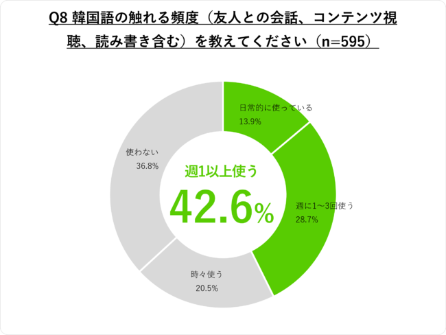 1.20代の半数近くが週1回以上韓国語を使用!使用シーンは動画視聴と友人との会話がトップ2に