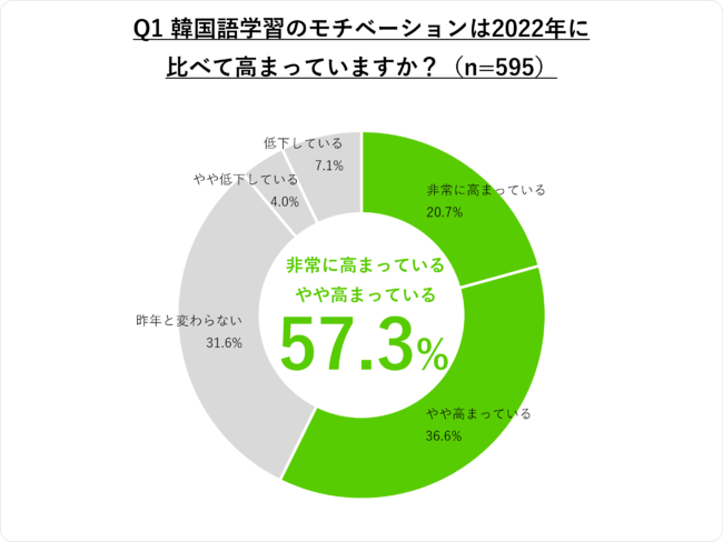 2.韓国語学習のモチベーションは昨年に比べて2人に1人が向上!根源となるのはエンタメと旅行