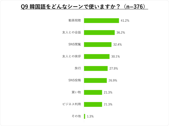 ● 20代の半数近くが週1回以上韓国語を使用!使用シーンは動画視聴と友人との会話がトップ2に