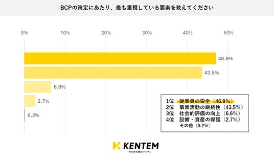 また、BCP策定では従業員の安全と事業活動の継続性が同程度に重視されていることも分かりました。