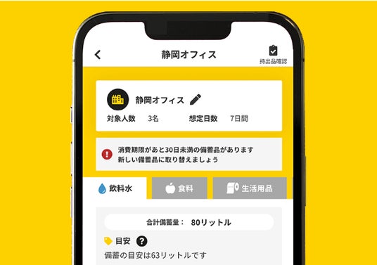さらに、備蓄品の消費期限が近づいた時には通知が届くので、期限切れの防止や入れ替えにお役立ていただけます。