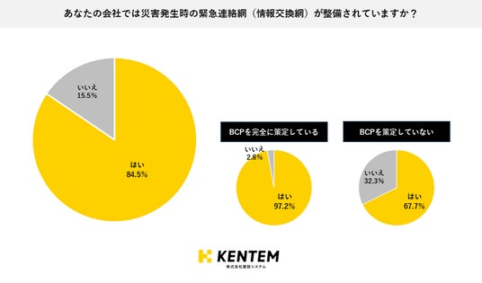 BCPの策定状況ごとに集計すると、「完全に策定している」と回答した企業のうち97.2%、「部分的に策定している」と回答した企業では95.1%が「緊急連絡網が整備されている」と回答しました。