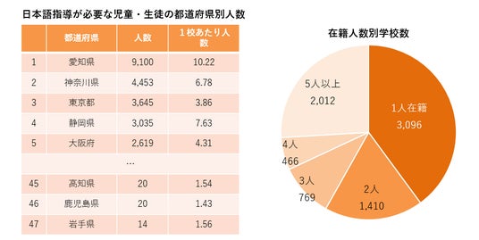 日本語指導が必要な子は、全国で同じように増えているわけではなく、地域による偏在が発生しています。全国の公立学校の約25%に「日本語指導が必要な児童・生徒」は在籍していますが、その多くは都市部に集中しており、複数言語の通訳や日本語教師を必要としている学校もあります。一方で、該当児童・生徒が在籍している学校の約40%は「1人のみの在籍」となっており、地方に多く見られるこうした学校や地域では、継続的な予算措置や体制づくりが進みづらく、十分な支援が受けられないことも多くなっています。こうした地域による偏在は、全国一律での対応を難しくしています。