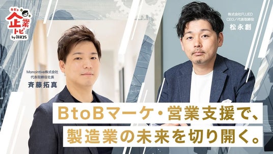 株式会社FLUED (本社:東京都港区、代表取締役社長:松永創)は、BtoB製造業特化型のマーケティング・営業支援をおこなうMonointive 株式会社 (本社:東京都渋谷区、代表取締役社長:斉藤 拓真)と製造業におけるマーケティング・セールス支援に関して協業していくことで合意しました。