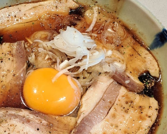 富山のご当地ラーメンのスープに麺は日本そばを合わせました。スープに笠庵のそば・うどんのかえしを使用し、仕上げに笠原監修の万能スパイスをかけてお召し上がりいただきます。