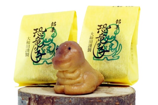 恐竜の形に焼き上げられた和菓子。自家製餡でひとつずつ手づくりされています。