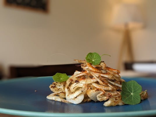 富山県産白海老のアンチョビバターソテーと六郷山田ファームのキャベツのロースト