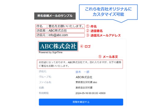 - 自社ブランディング: 署名者への通知メールに自社の企業ロゴや送信ドメインを反映