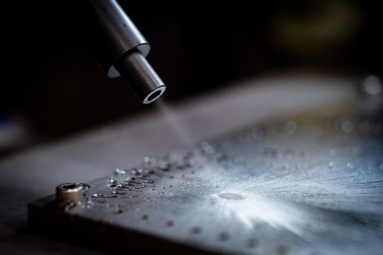 マイクロアイスジェット水と圧縮エアのみでミクロンサイズの異物除去が可能なノズル。半導体の精密洗浄工程で貢献。(詳細はこちら)