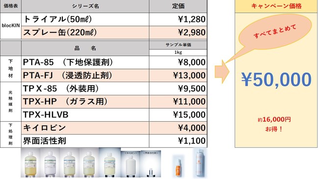 弊社は本展示会出展にあたり、ご加盟いただく企業様にはサンプル液剤セットをキャンペーン価格でご提供いたします。また光触媒を活用した事業のビジネスモデルや収益構造、業界情報や市場動向、他社情報含めすべて情報提供いたしますので、この機会にぜひご来場ください。