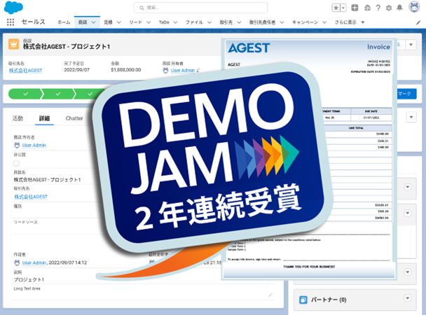MK Partnersが開発した、Salesforce用ドキュメント自動生成アプリ「Mambo Merge」は、AppExchangeとSalesforceが主催するSalesforce用のアプリのイベント“DEMO JAM”において2年連続で優勝するなど、評価が高いアプリです。