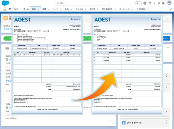 また、「Mambo Merge」はSalesforceのアプリ上で動くネイティブソリューションであるため、Salesforceに入っている顧客データが外に出ることがなく、データの作成をSalesforce内で完結出来るため、外部にデータをエキスポートすることによるデータ漏洩等の危険を回避し、安全にドキュメントの生成を可能にするなど、請求書、見積書、契約書、作業命令書、購入注文書などの作成に最適なアプリです。