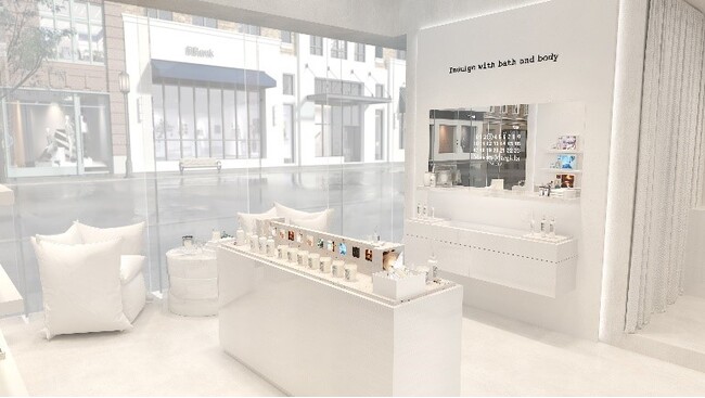 大通りに面したウィンドウには、真っ白なリビングを思わせるショールームのような空間が広がり、香りとともにストア内を彩ります。