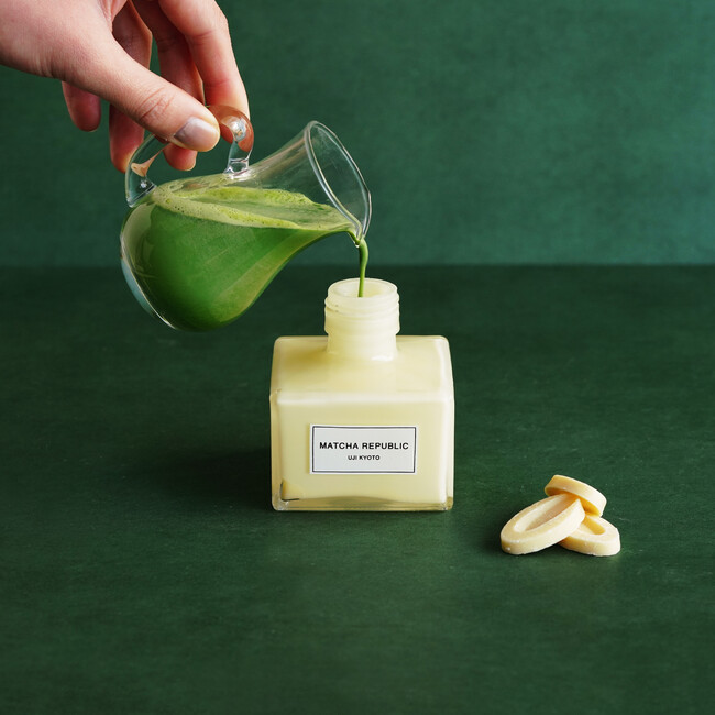 ホワイトチョコレートがなめらかにとろけ、石臼挽き宇治抹茶の香りが重なるスイートなホットドリンクです。