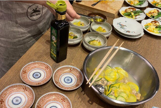 日仏貿易株式会社(本社:東京都千代田区 / 代表取締役社長 ギヨーム・カルー)は5月7日(日)に、輸入販売するオーガニックの先駆者・アルチェネロの有機エキストラ・ヴァージン・オリーブオイルの魅力を体感する料理教室型のPRイベントを実施しました。