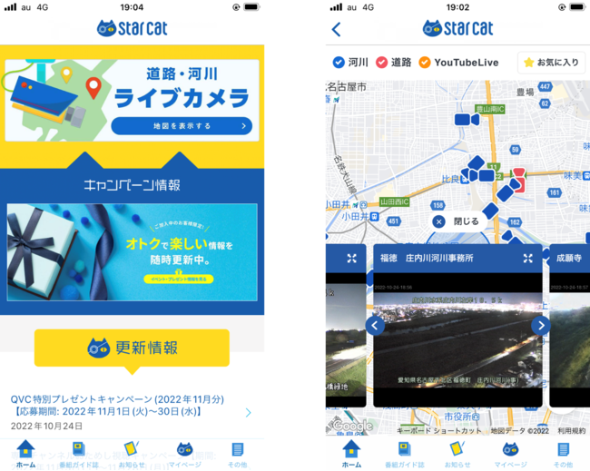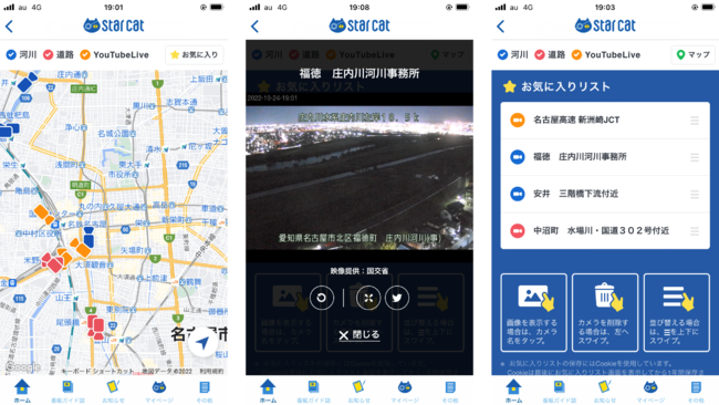 スターキャット・ケーブルネットワーク株式会社(本社:愛知県名古屋市、代表取締役社長:松下寿昭、以下「スターキャット」)は、公式アプリにおいて、道路や河川の状況をリアルタイムに確認することができるライブカメラ機能の提供を開始いたしました。