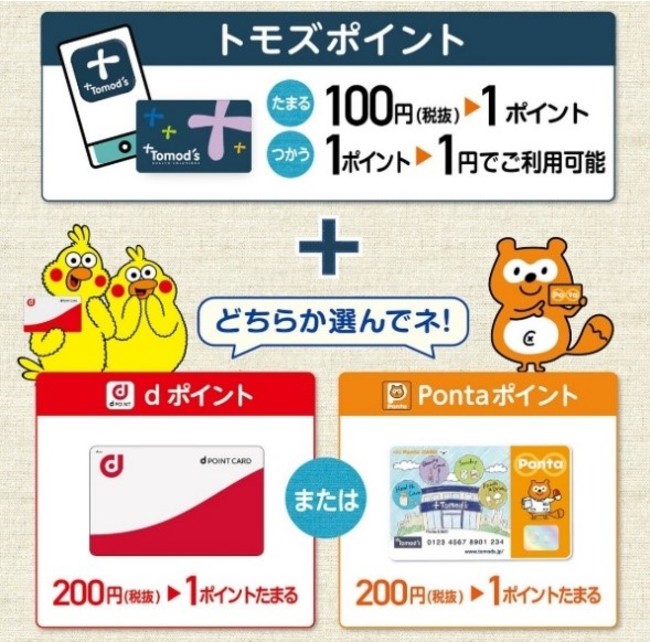 当社では、既に株式会社 ロイヤリティ マーケティングが提供するポイントサービス「Ponta」を導入しておりますが、「dポイント」の導入により、お客様にはどちらか好きなポイントサービスを選択していただくことができるようになります。加えて、当社のポイントカードについては、「dポイント」「Ponta」のどちらにポイントを付与した場合でも、併行してポイントをお付けします。