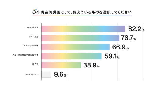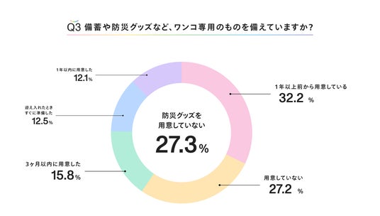 - 72.7%が愛犬用の備蓄や防災グッズを備えており、フードや飲料水・トイレ用品を用意