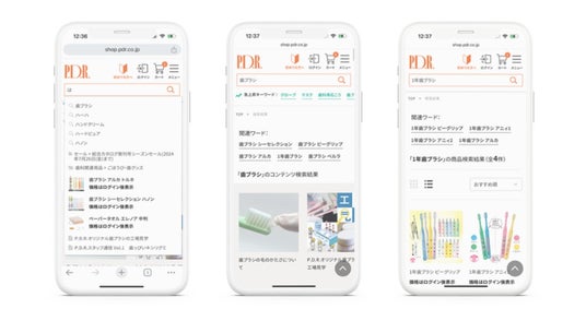 また、商品検索時に迷うことがあれば、「歯ブラシの選び方」や「各マスクの特徴」などのコンテンツを商品検索と同時検索するので、お役立ち情報を参照しながら購入検討ができます。