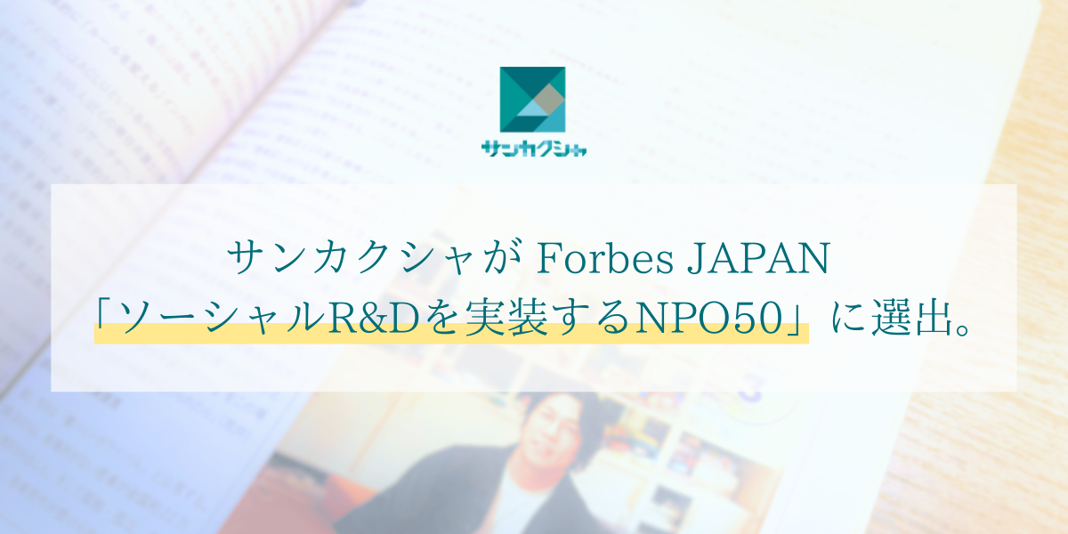 特定非営利活動法人サンカクシャは、2025年10月24日発売の『Forbes JAPAN 12月号』(発行元:リンクタイズ株式会社)にて「ソーシャルR&Dを実装するNPO50」に選出・掲載されました。