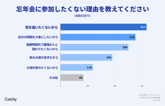 仕事関係の忘年会に参加したくない理由は「気を遣いたくないから」がトップに