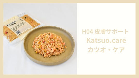 栄養バランスをシビアに設計した、世界でも珍しい機能性フレッシュフードです。栄養制限がある愛犬にもごはん時間を楽しんでもらいたい、という想いで開発しました。フレッシュフードが持つ食材本来の風味や香りを活かすことで、お食事の制限をしないといけない愛犬たちも美味しく食べられる、しかも、国産の安心・安全な食材を使用した、総合栄養フレッシュフード。今回新発売した「H04皮膚サポート カツオ・ケア」もヘルスケアプラスの1つです。